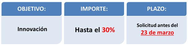 En este sentido y como les indicábamos, hasta el 23/03/2018, está abierto el plazo para la Solicitud de Ayudas, de hasta un 30% de Subvención a fondo perdido, para este tipo de Asesoramiento y Acompañamiento.