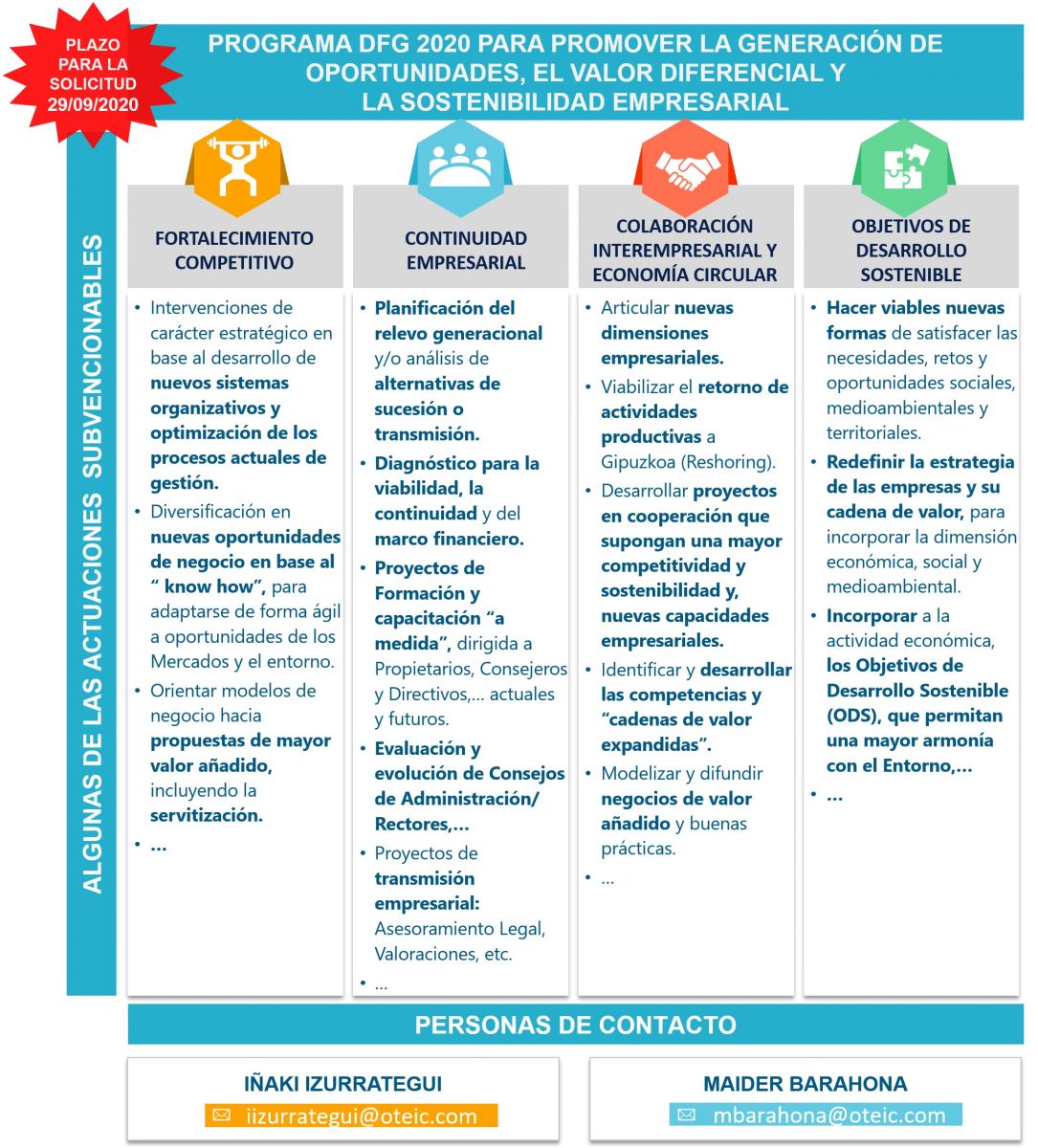 • Ayudas de la DFG 2020 para "Promover la generación de oportunidades, el valor diferencial y la sostenibilidad empresarial"