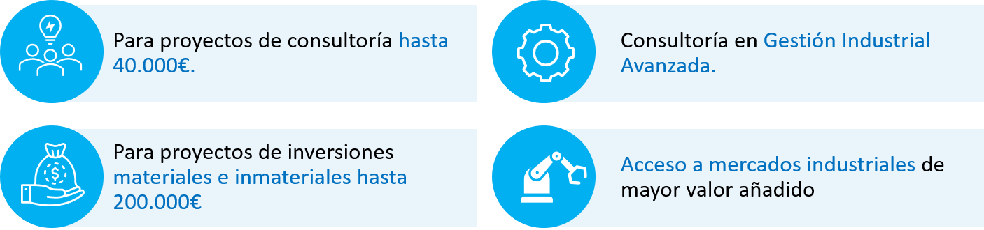 Podemos ayudarles a identificar, diagnosticar y abordar potenciales retos Industriales que puedan tener, y visualizar su posible financiación a través de las citadas ayudas.
