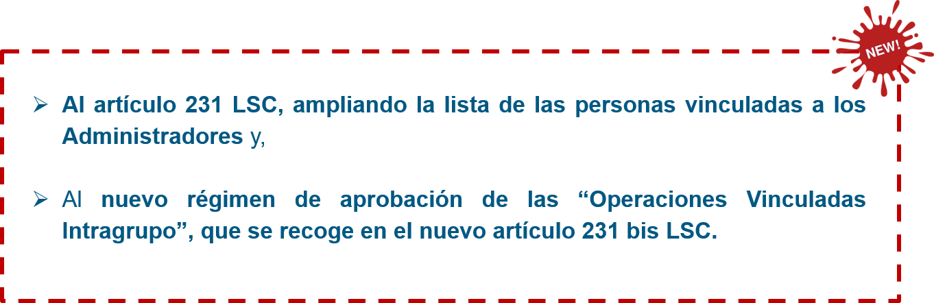 La Ley 5/2021 de 12 de abril (por la cual se modifican entre otras leyes, la Ley de Sociedades de Capital (LSC)), que entró en vigor el 3 de mayo de 2021, afecta a todas las sociedades de capital e introdujo una serie de modificaciones, entre otras: