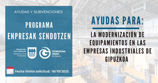 Le informamos sobre el Programa "Enpresak Sendotzen" para la modernización de equipamientos en las empresas industriales de Gipuzkoa.